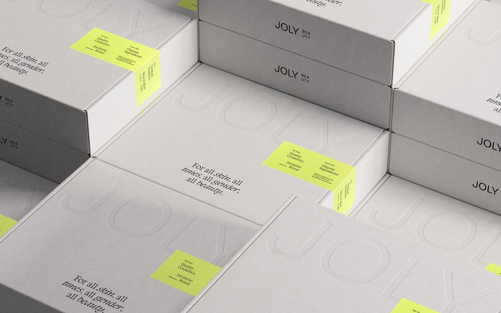 Amidst the cluttered digital landscape, Joly Beauty stands out as a refreshing, youthful presence. With a simple yet profound mission to redefine beauty and wellness, Joly embraces diversity, vibrancy, and the ever-evolving nature of individuality. The brand celebrates inclusivity, culture, and empowerment by offering a captivating range of cosmetics that empower individuals to define beauty on their own terms. Joly Beauty's visual identity strikes a harmonious balance between youthful freshness and sophistication, achieved through a well-balanced typographical approach and a pastel yet vibrant color palette. This approach distinguishes the brand in the e-commerce platform arena. The materials and finishes chosen align seamlessly with the brand's positioning.